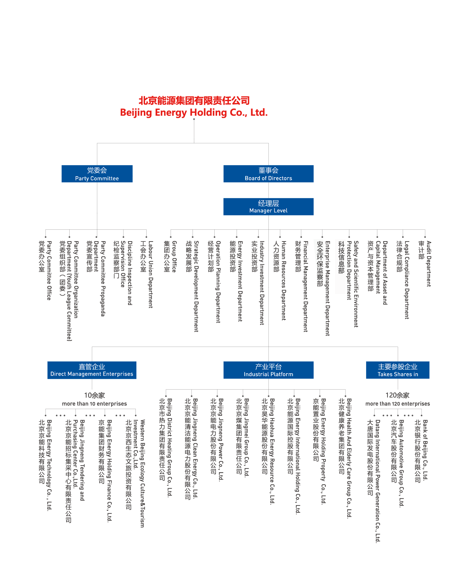 北京能源集團有限責(zé)任公司(以下簡稱“京能集團”或“集團”)是北京市人民政府出資設(shè)立的國有獨資公司,肩負(fù)著保障首都北京能源安全可靠供應(yīng)的重任。集團成立于2004年,由原北京國際電力開發(fā)投資公司和原北京市綜合投資公司合并而成,2011年、2014年先后又與北京市熱力集團有限責(zé)任公司、北京京煤集團有限責(zé)任公司實施合并重組,實現(xiàn)了產(chǎn)業(yè)鏈條融合互補。經(jīng)過多年的資源整合,集團由單一能源產(chǎn)業(yè)發(fā)展為熱力、電力、煤炭、健康文旅等多業(yè)態(tài)產(chǎn)業(yè)格局。2024年底,集團資產(chǎn)規(guī)模達(dá)4934億元,年營業(yè)收入975億元,全資及控股企業(yè)860余家,參股企業(yè)120余家,擁有員工3.4萬余人,投資區(qū)域遍布全國33個省市區(qū)以及海外,控股京能清潔能源、京能電力、昊華能源、京能置業(yè)、北京能源國際、京能熱力六家上市公司,盈利水平長期穩(wěn)居北京市屬企業(yè)前列。2024年在中國企業(yè)500強排名第247位,中國服務(wù)企業(yè)500強排名第87位。